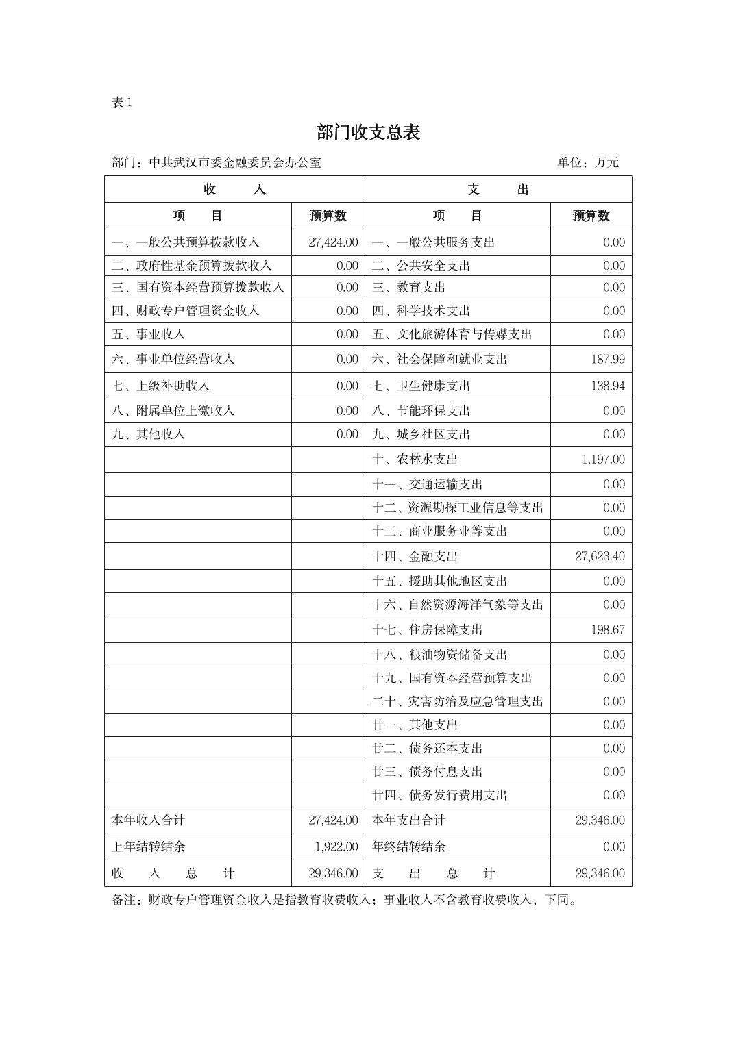 2024 年度中共武汉市委金融委员会办公室(中共武汉市委金融工作委员会、武汉市地方金融管理局)单位决算公开