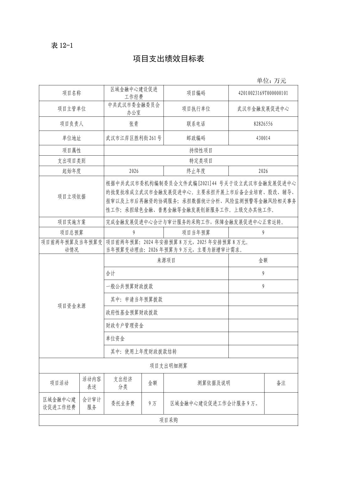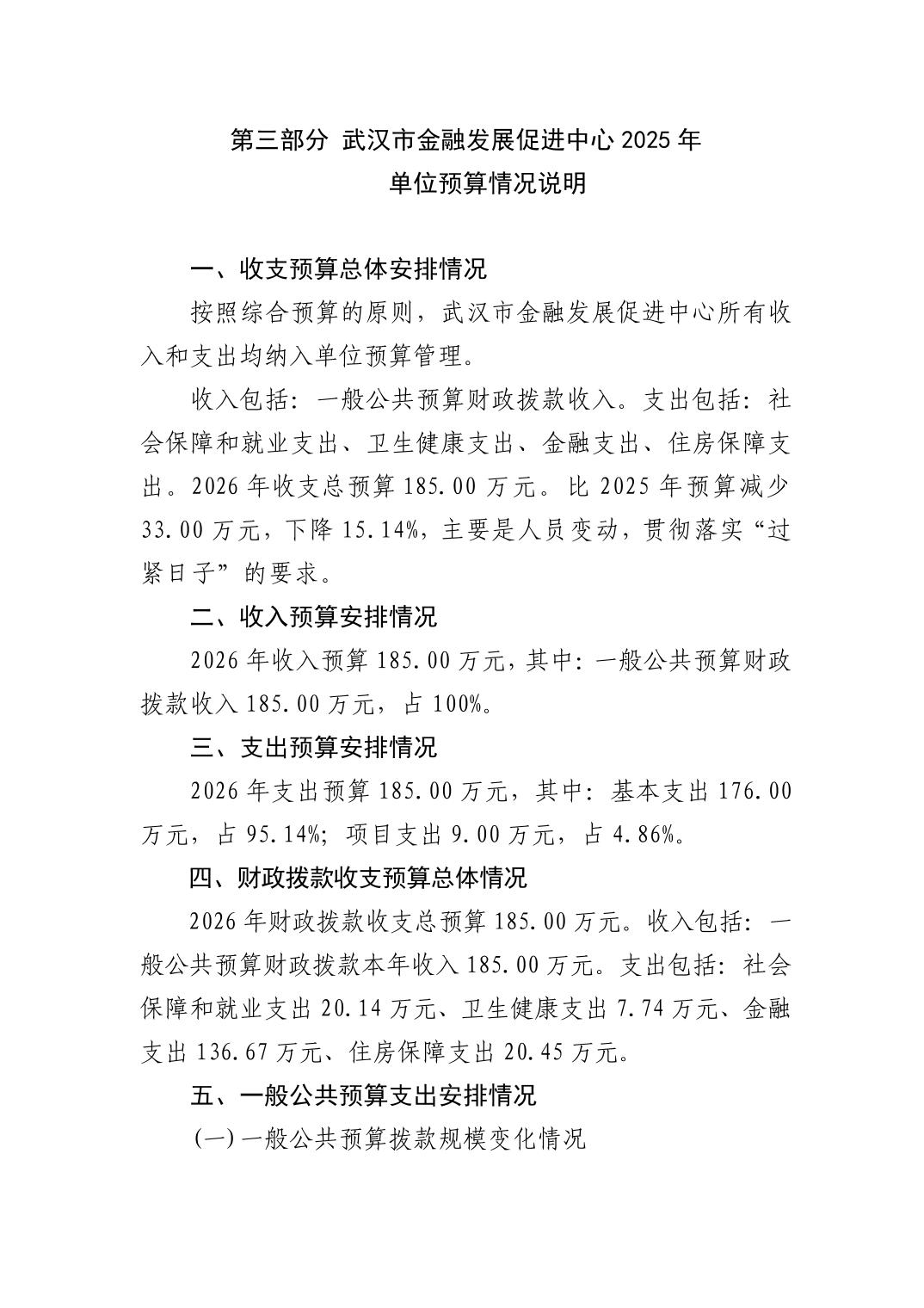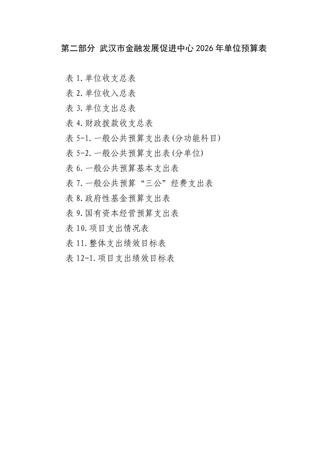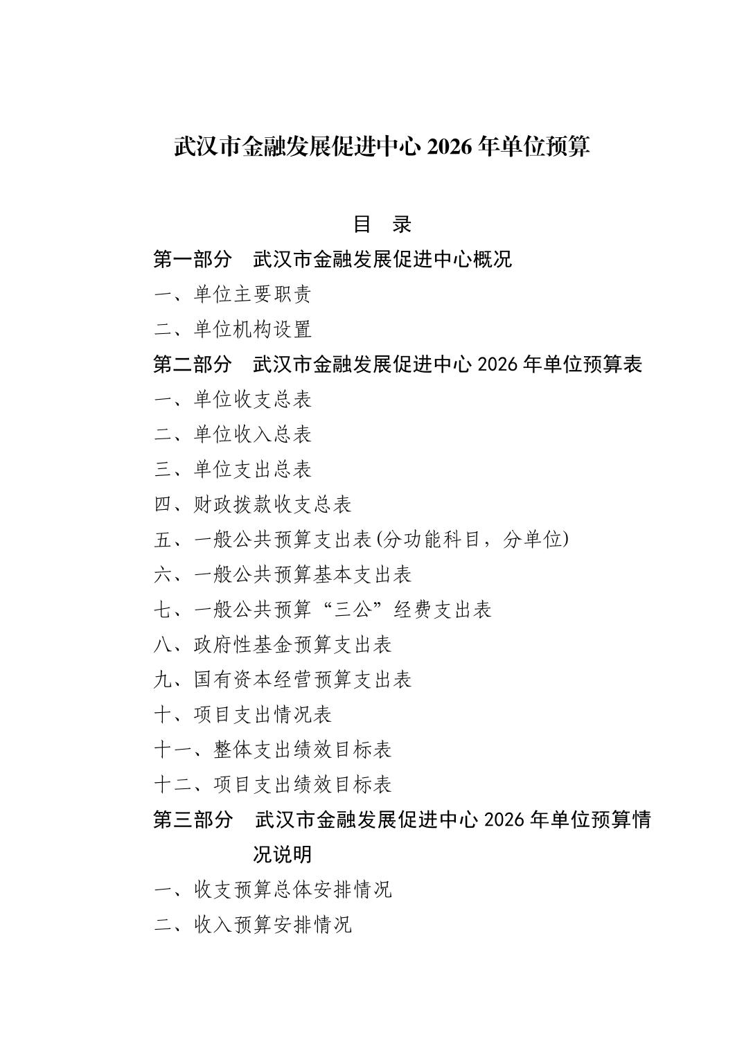 武汉市金融发展促进中心2026年单位预算