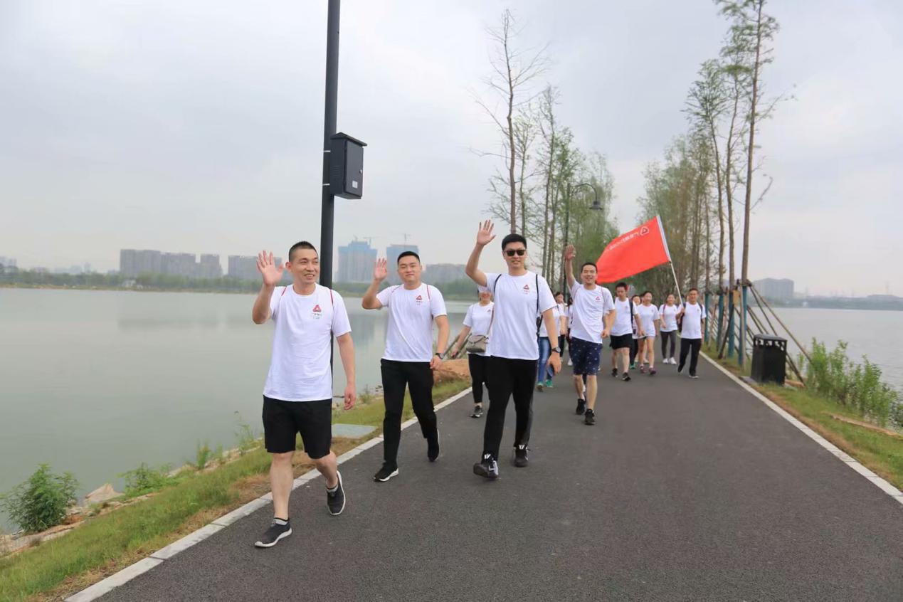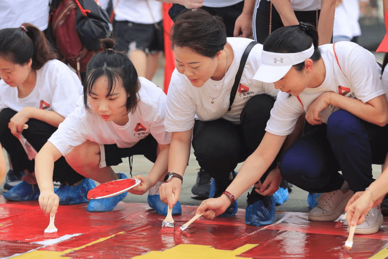 本次健步走活动全程约8公里,从东湖绿道白马驿站入口出发,沿绿道内路线一周再回到起点,途径2个任务点,各代表队队员需完成平步青云和毽球大战两项徒步任务,集齐两枚印章后返回起点,完成本次健步走活动。活动过程中,“共绘蓝图”环节旨在增强团队协作能力,分行领导班子与各代表队队员分工协作进行着色,一起制作完成了“新时代· 新广发”的巨幅画卷。