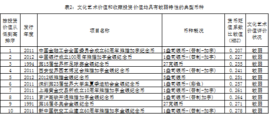 2.文化艺术价值与收藏投资价值均较弱的币种