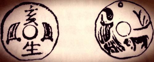 本命星官亥猪图背符箓钱。直径48毫米,重33克。圆形方孔,穿微有决纹,宋金时期铸造。钱面穿上有“本命星官”四字,穿下设有香炉。穿左有飘洒的道教符箓,下为一只猪图,面向右。穿右为一星官形象,头戴通天冠。钱背为道教虎头符箓,意为祈福辟邪。