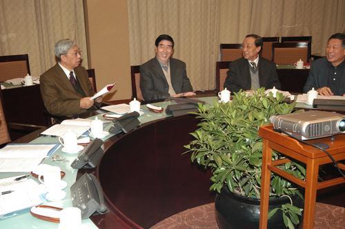 李学勤先生(右二)参加中国钱币学会理事会议。