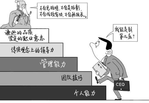 管理大师吉姆·柯林斯在《从优秀到卓越》一书中将经理人的能力分为五个层级,第一级是个人能力;第二级是团队技巧;第三级是管理能力;第四级是传统观念上的领导力;第五级是除拥有前四个层级的所有技能外,额外具有的一种“超常能力”——一种谦逊的品质与坚定的职业意志。这些人大多不愿抛头露面,不接受阿谀奉承,愿意舍弃私欲、付出一切使公司变得更加杰出。并不是说他们没有自我或没有个人私欲,而是说他们不是为了自己,是为了公司和公司的伟大前途;他们从不谈论自己,他们常常乐于谈论公司和其他经理所做的贡献。第五级经理人所具有的正是老子倡导无私、谦卑、利他等理想人格必备的品质。我们完全有理由期待,拥有这种品质的企业家,在未来中国和未来社会中将会越来越多!(张剑伟)
