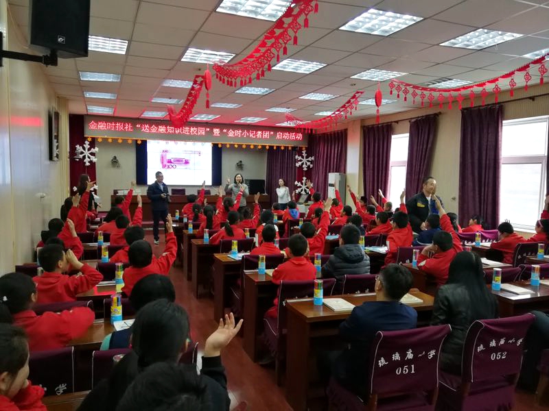 在“金时小记者团”启动活动中,张艺涵、李宇、贾鑫茹、马万鹏、刘博新、孙冉6名同学成为首批“金时小记者团”成员,金融时报社副社长方文为他们颁发了记者服和记者帽。作为首批“金时小记者”,他们将获得金融时报社记者、编辑的写作、采访指导,其中优秀的作品将有机会刊发在《金融时报》上。活动现场,几位“金时小记者”活学活用,主动对琉璃庙镇中心小学校长刘建军、方文等人进行采访。
