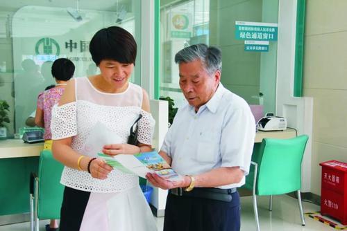 饶才富退休后每天都会到营业大厅看看,主动向客户宣传农行的金融产品。