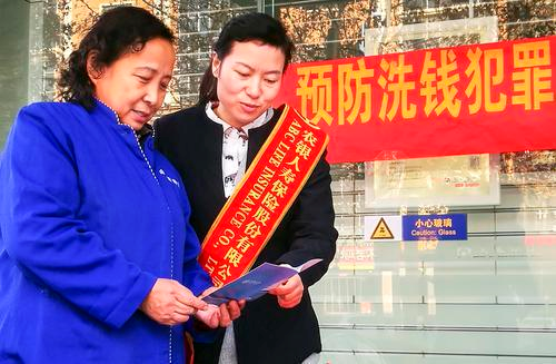 日前,农银人寿河南新乡中心支公司组织工作人员走进市区饮马口街道,向群众讲解洗钱的常见方式、潜藏在身边的洗钱风险类型及如何防范洗钱风险,让广大市民提高反洗钱意识,认清洗钱陷阱,提升反洗钱能力。图为该公司工作人员正在向市民讲解反洗钱知识。 (本报记者 刘志良 通讯员 郑杰 摄)