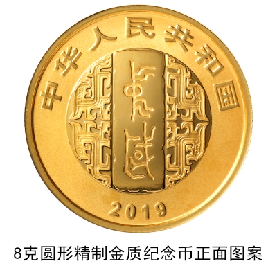 该套金银纪念币正面图案均为金文“中国”字样衬以青铜器装饰纹样,并刊国名、年号。