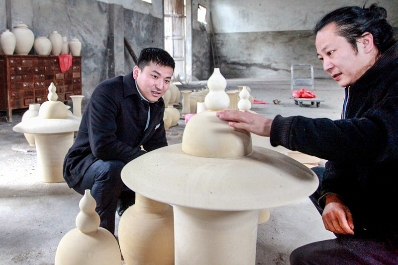 浙江省开化农商银行加大信贷支持根艺、青瓷、石雕、竹编等多项民间工艺品传承发展力度,截至目前,该行已发放贷款余额达1.1亿余元。图为该行支持的衢州市非遗项目“开化青瓷烧制技艺”传承人葛毅辉在制作青瓷,他去年制作的青瓷工艺品、餐具等1000余件销往日本、韩国。(刘志良 通讯员 齐振松 摄)