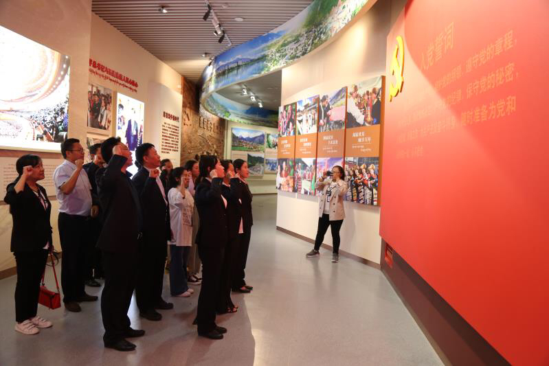 为加快西藏发展步伐,党中央、国务院优惠的政策以及巨大的人力、物力、财力、技术的全面的支援,使参观的全体党员深受触动。大家主动走到“入党誓词”处,重温入党誓词,铭记初心和使命。同时,纷纷表示既要铭记历史,珍惜今天,也要不忘初心,以更加激昂向上、奋发有为的精神状态,投入到邮储银行西藏分行转型发展的各项工作中。