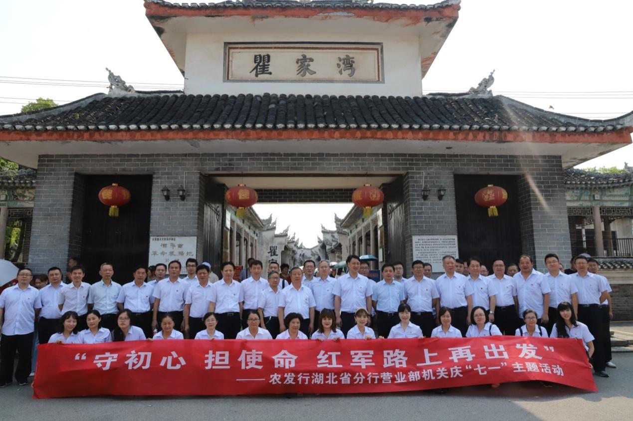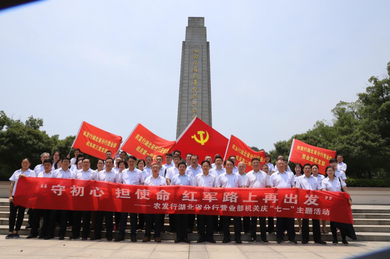 为庆祝中国共产党建党98周年,中国农业发展银行湖北省分行营业部组织机关及营业室四个党支部近70名党员,于7月2日前往洪湖革命老区全国爱国主义教育示范基地——湘鄂西苏区革命烈士纪念园及瞿家湾湘鄂西革命根据地旧址参观,开展“守初心 担使命 红军路上再出发”庆“七一”主题党建活动。