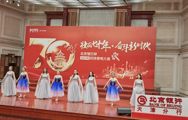 本网讯 在全社会共同庆祝中华人民共和国成立70周年之际,9月26日,由北京银行天津分行主办的“壮丽七十年、奋斗新时代——‘北京银行杯’2019年团体歌唱大赛”汇报演出在天津音乐厅举行,参赛团体、市民百姓、社会各界代表近700人参加了活动。演出用气势磅礴的经典曲目大合唱,讴歌了祖国的繁荣与富强,抒发了建功新时代的豪情壮志,诚挚表达了对祖国的拳拳爱意。