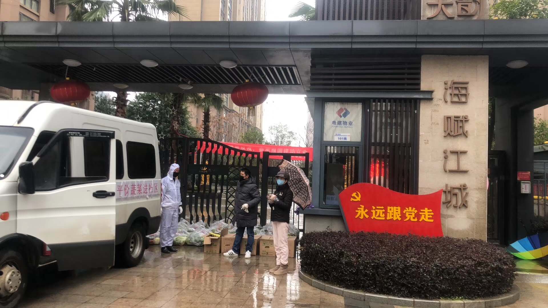李德宝(中)甘当志愿者正在帮助小区邻里团菜