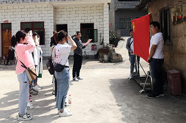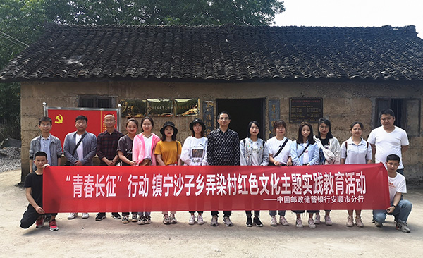 到达目的地后,首先参观了陆瑞光故居,听村支书讲述了红军长征到弄染村的故事。在陆瑞光故居前,安顺市分行团委书记汪利红带头组织团员青年举团旗、戴团徽,一同重温了入团誓词,用飞扬的激情表达了对邮储银行事业的赤诚之心,诠释了积极向上的人生观和价值观。