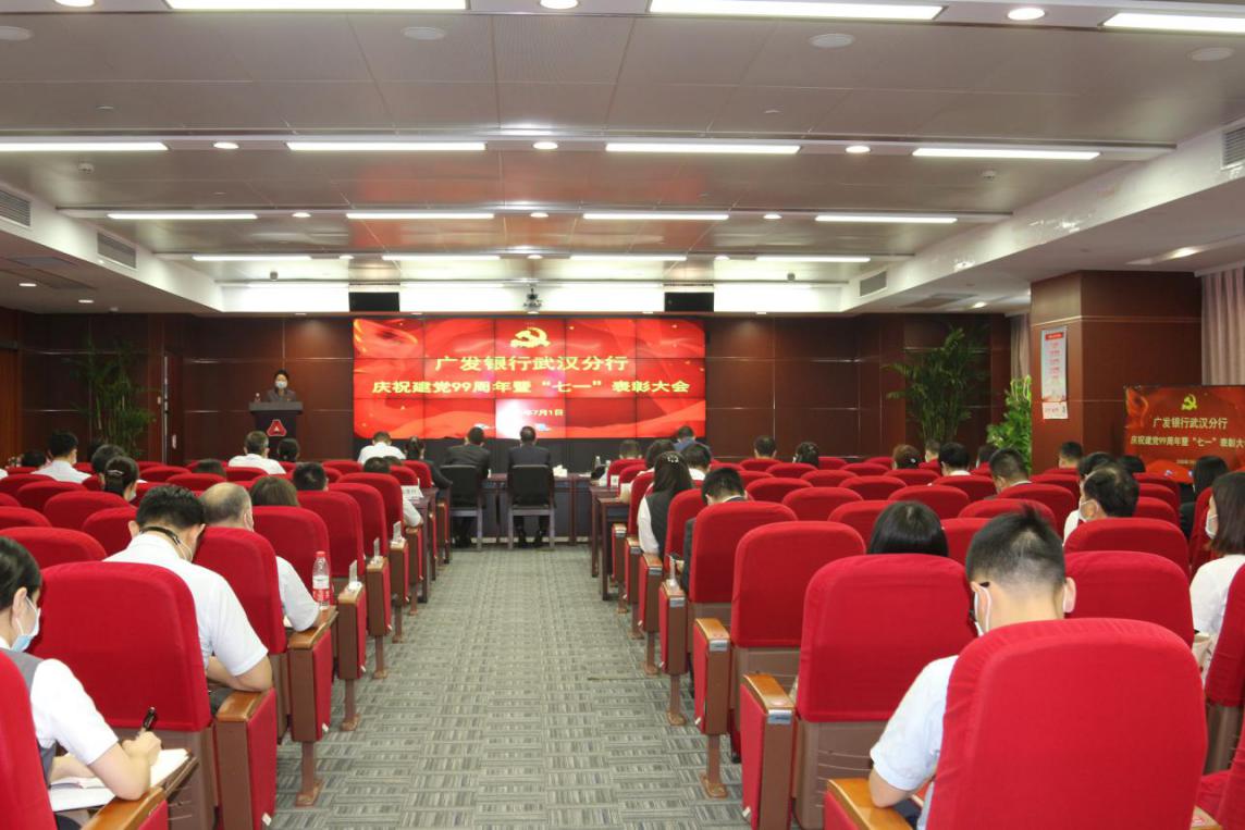 7月1日,广发银行武汉分行召开庆祝建党99周年暨“七一”表彰大会,该行党委班子成员、全体党员及全体中层干部共计300余人分别以现场和视频的形式参加大会。