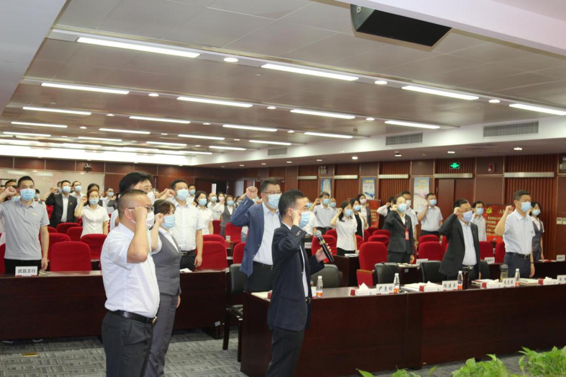 大会在庄严的国歌声中拉开序幕。在鲜红的党旗前,广发银行武汉分行党委书记、行长陶建全同志领誓,新党员庄严宣誓,老党员重温入党誓词。铿锵有力的誓词强烈震撼着每一名党员,一字一句,肃穆而神圣,体现了广大党员对中国共产党的无限忠诚。