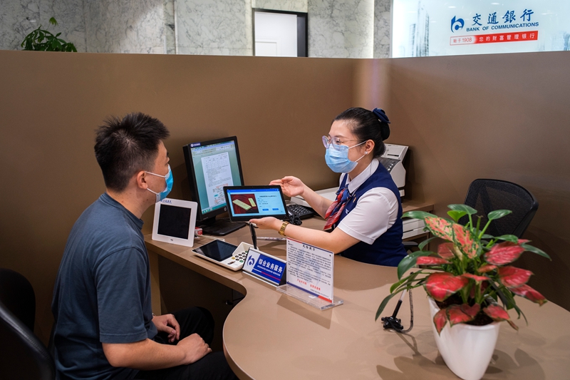 近日,国际黄金市场波动,黄金交易骤增。交通银行北京分行紧随市场热点,通过现场讲解、线上直播等方式加强风险提示,保障贵金属业务良性发展。图为该行营业部客户经理正在向客户介绍可回购沃德金业务。