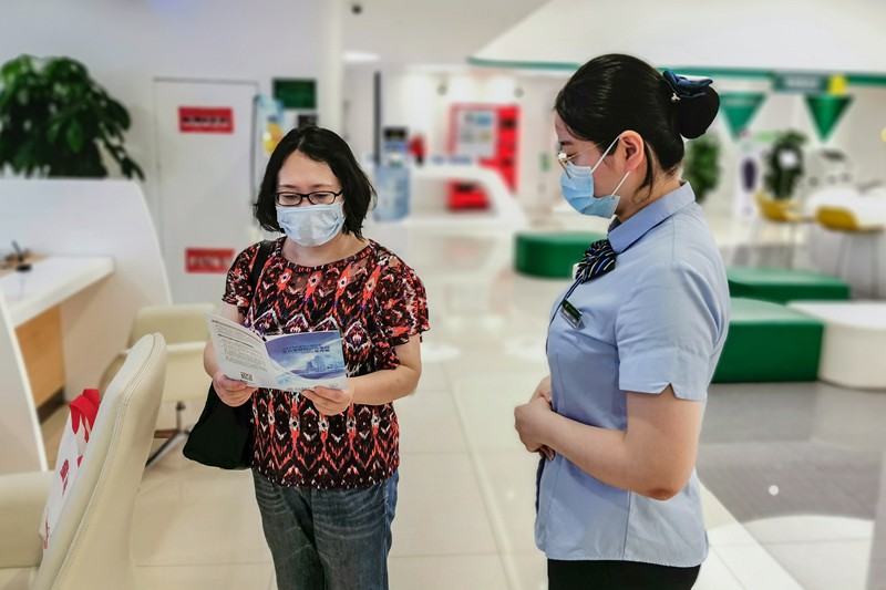 为提升全民金融风险防范意识,日前,邮储银行浙江杭州市分行在辖区广泛开展了 “普及金融知识万里行”主题活动。活动中,该行以网点宣传为主,结合进社区、进企业、进商铺,向广大消费者宣传个人信息保护、防范电信网络诈骗、依法理性维权等金融知识,有效提升了群众自我保护和防范意识。图为该行网点大堂经理在向客户普及金融知识。