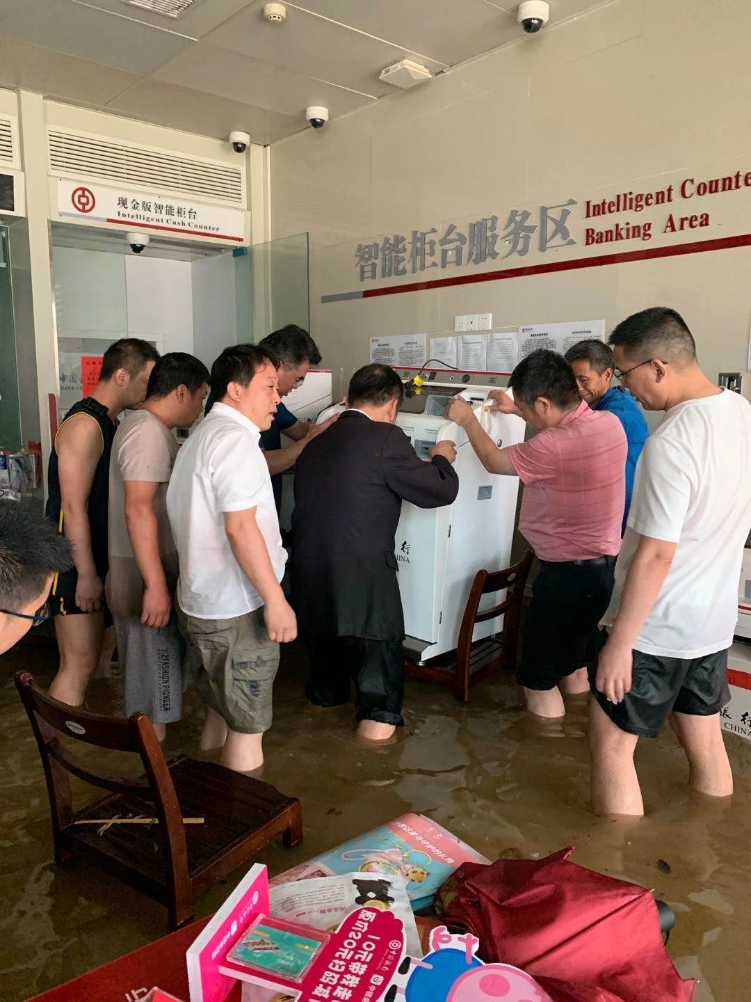7月8日凌晨,受持续3个小时极端强降雨影响,湖北黄冈黄梅县城发生外围洪水倒灌,中行黄冈分行黄梅支行所处地段积水水位达1.2米。面对险情,中行以最快的速度聚集力量,高效、有序开展抢险工作。
