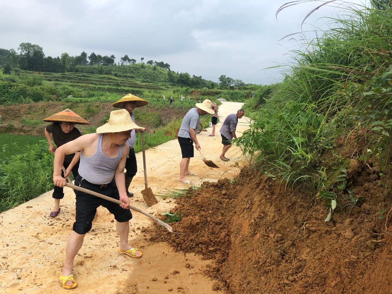 6月29日,邵阳地区普降暴雨,中行湖南省分行扶贫工作队成立金水村防汛抗洪青山岭水库堤坝库区水位巡查、易塌方危险路段、山塘、溢洪道、重点危房及重点目标等四个巡查小组,实行24小时值班制度。网格员、村干、村民小组长齐上阵,分析滑坡、塌方、水涝的可能区域,逐户通知村民搬迁。暴雨淹没了河边的民房,冲毁了部分庄稼农田,冲垮了部分路基,但由于防汛部署及时、措施得当,金水村洪灾没有出现人员伤亡的情况。雨势减小,金水村村支两委和驻村帮扶工作队及时下村入户,并全力投入灾后重建工作,拿起铁锹锄头,突击清理塌方路段,经过一天努力,四处塌方严重路段恢复畅通。