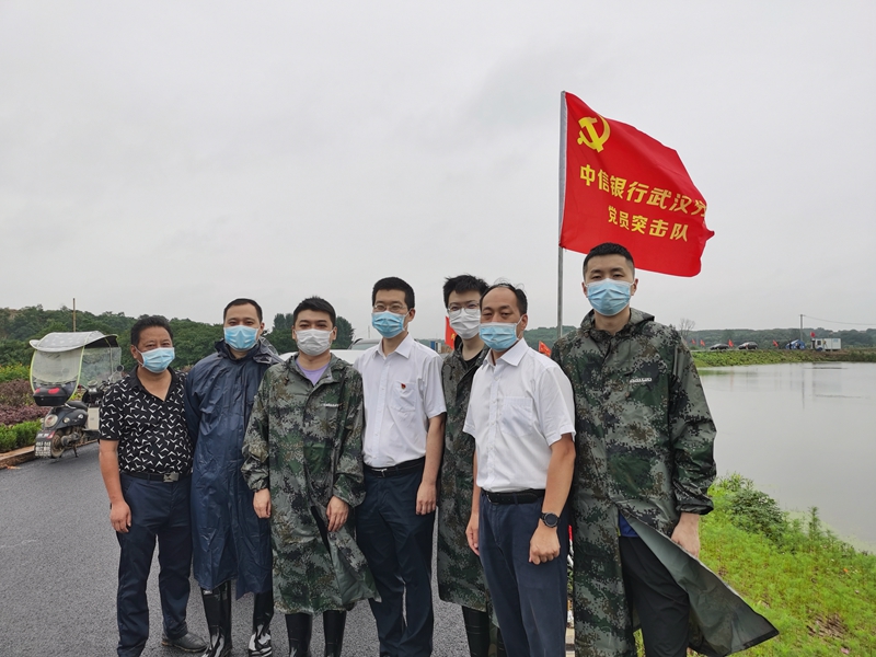 汛情就是命令,防汛就是责任。中信银行武汉分行党委迅速制定了《支援鄂州市防汛抗洪应急工作方案》,成立了以党委书记为组长的防汛抗洪工作领导小组,负责防汛抗洪支援工作整体部署,并向干部员工紧急发出《关于组建赴鄂州防汛抗洪志愿者突击队的倡议书》。不到12小时,中信银行武汉分行便迅速组建了第一批66人共22个班次的党员志愿者突击队奔赴鄂州抗洪一线。