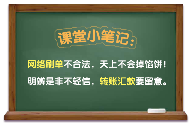 打着“高额佣金、快速结算”的网络小广告诱惑学生们做刷单任务赚取零花钱,以小额刷单给甜头,再以大额刷单进行诈骗。有些骗子还以“刷贷款业绩单”为由,诱骗学生将申请贷款到账的钱转给诈骗账户,最终卷款走人。