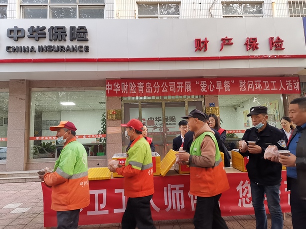 近日,中华保险青岛分公司即墨支公司开展“爱心早餐,情暖环卫工人”公益活动,为环卫工人提供免费早餐。