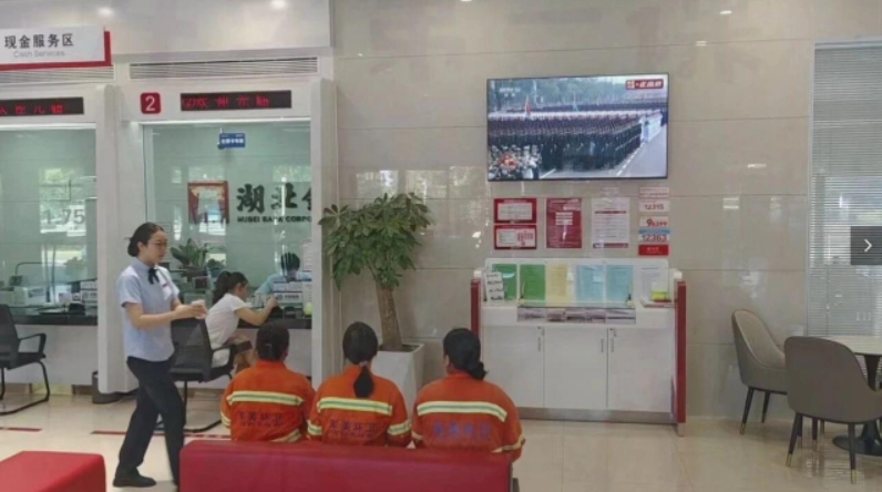 9月3日上午,湖北银行武汉车谷支行门外,三名环卫工人正踮脚向营业大厅内张望,电视上正在直播的阅兵仪式吸引了他们的目光。00后银行员工董宸希发现了门外的“观众”,立即开门迎接,引导她们到沙发就座,并端上热茶。这幕温情互动,经过极目新闻报道后成为网络热点。她说:“当天如果不是我值班,其他同事看到也会开门迎进来的。”
