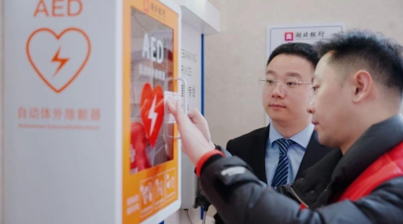 湖北银行的服务温度不仅体现在一杯茶、一个座位上。今年年初,湖北银行陆续在全行254个网点配置了AED(自动体外除颤器)设备,面向社会24小时开放,成为湖北省内首家实现AED全覆盖的商业银行,为见义敢为、见义能为、见义会为提供“硬支撑”。