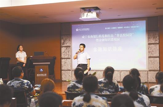 开展远离“非法校园贷”宣传。9月份以来,全省农商行按照校园宣传“十个一”的要求,在各大高校开展金融基础知识和诚信理念教育,引导学生树立健康消费观念,远离非法校园贷,助力营造安全和谐的校园环境。咸宁农商行主办的咸宁市防范和打击“非法校园贷”主题宣传知识讲座在湖北科技学院举办,农商行专家通过真实案例为在座的800名学生讲述“非法校园贷”的危害,并现场解答学生提问。红安农商行走进武汉商贸职业学院工业园校区,为600名入学新生送去丰富的金融知识。三峡农商行武昌支行在武昌职业学院成功开展了防范和打击“非法校园贷”主题宣传活动。全省共举办校园宣传活动19场,参与学生达1.9万人次。