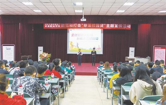 图为:三峡农商行走进武昌职业学院开展防范和打击“非法校园贷”宣传