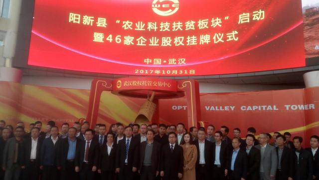 31日,阳新县46家农业科技扶贫板块企业在武汉股权托管交易中心集中举行挂牌仪式,其中“股份公司板”16家,“科技板”30家。