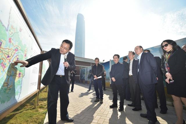 6日上午,在武汉CBD,江汉区委、区政府负责人带领同心俱乐部会员企业家一行来到规划沙盘前,介绍商务区整体规划建设情况。随后参观了武汉CBD中轴线、商务区地铁站、地下综合管廊,听取了管廊建设规划及商务区基础设施建设情况的介绍。最后考察了电影制片厂片旧城改建项目。整个参观过程中,企业家们对武汉CBD的区位优势、交通优势表现出浓厚的兴趣。