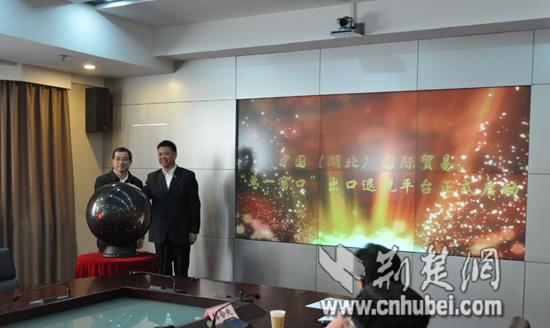 湖北省商务厅党组书记秦军与湖北省国税局局长胡立升一起点亮启动球