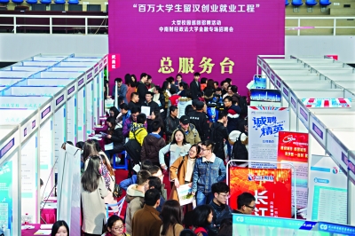 “希望广大学子留在武汉,发挥专业优势和影响力,助力武汉建设中部金融中心。”大型校园巡回招聘会昨日走进中南财经政法大学南湖校区。