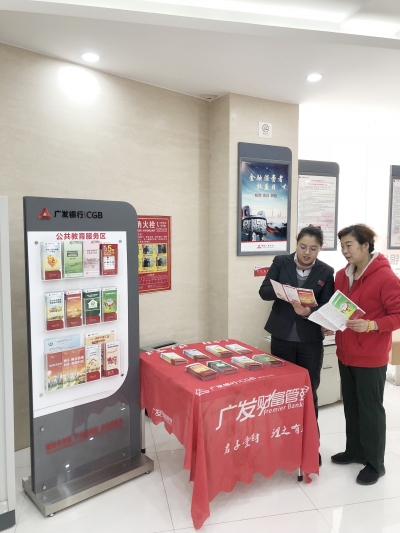 二是加强辖内网点阵地宣传。在活动期间(3月5日至3月23日),广发银行武汉分行全辖网点统一在电子显示屏上滚动播放“品质消费 美好生活”、“权利·责任·风险-3·15金融消费者权益日”等活动主题、活动口号及宣传标语;在营业厅堂设置宣传服务咨询台,围绕保护金融消费者合法权益以及金融广告、个人理财、信用卡等内容,开展金融知识普及和风险防范宣传,提供专场咨询服务;同时在现场发送《宣传手册》、《指导意见》、《实施办法》、《湖北省消费权益保护条例》、《消费者权益保护法》、《中华人民共和国广告法》等宣传资料,并提供专场咨询及讲解服务;在营业大厅内开辟宣传专区,张贴宣传海报,播放宣传片,在显著位置统一摆放《“金融消费者权益日”宣传手册(2018)》、《广发银行普及金融知识宣传手册》等相关金融知识宣传资料,向金融消费者发放或供其取阅,对广大金融消费者开展金融知识普及和安全提示工作;针对老年人等重点人群,广发银行武汉分行工作人员利用问卷调查、微信、新闻报刊等增加宣传信息量,提高受众覆盖面,充实宣传内容;辖内各网点结合实际情况,还积极开展了进社区、进学校、进商圈、进企业金融知识普及和风险防范宣传,在宣传现场发放《湖北省消费者权益保护条例》、《消费者权益保护法》等宣传资料,开展专场咨询及讲解。