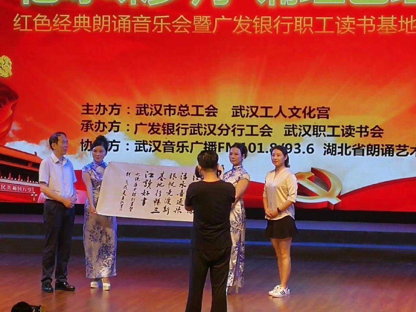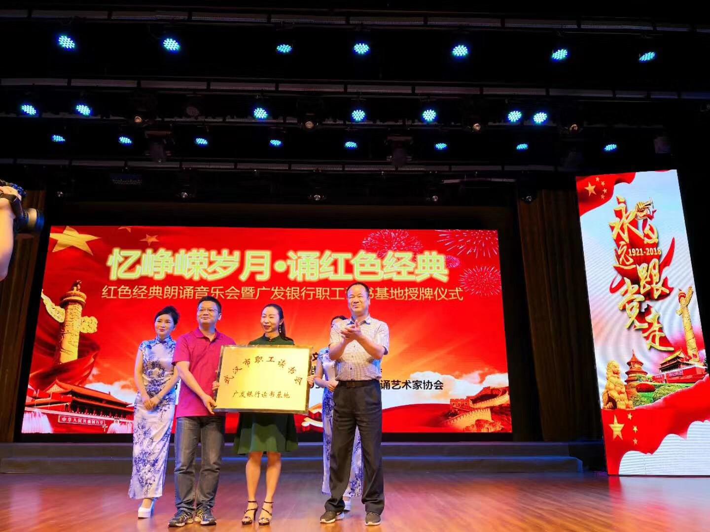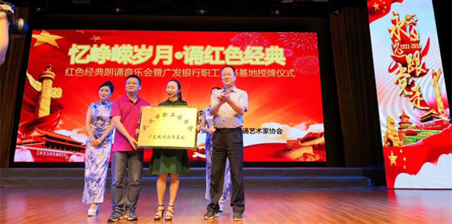 日前,广发银行武汉分行与武汉市总工会在武汉工人文化宫联合举办“忆峥嵘岁月·诵红色经典”朗诵音乐会,会上同时启动广发银行职工读书基地授牌仪式。