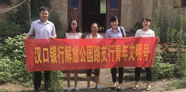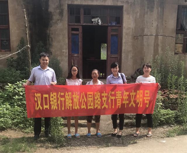 7月4日,“武汉市青年文明号”汉口银行解放公园路支行网点负责人与江岸支行优秀共青团员代表组成帮扶小组,一同赴蔡甸区港咀村慰问留守儿童付可儿小朋友。