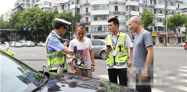 警保联动查勘员正在为事故车辆查勘定损 通讯员 杨洁琼 摄