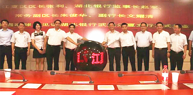 江夏区与湖北银行相关领导共同按下启动球,见证湖北银行武汉江夏支行正式开业。