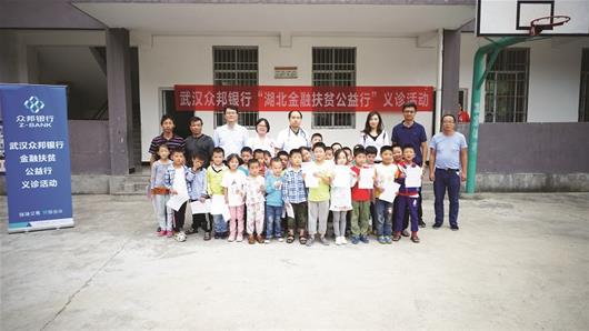 图为:武汉众邦银行“湖北金融扶贫公益行”义诊活动合影