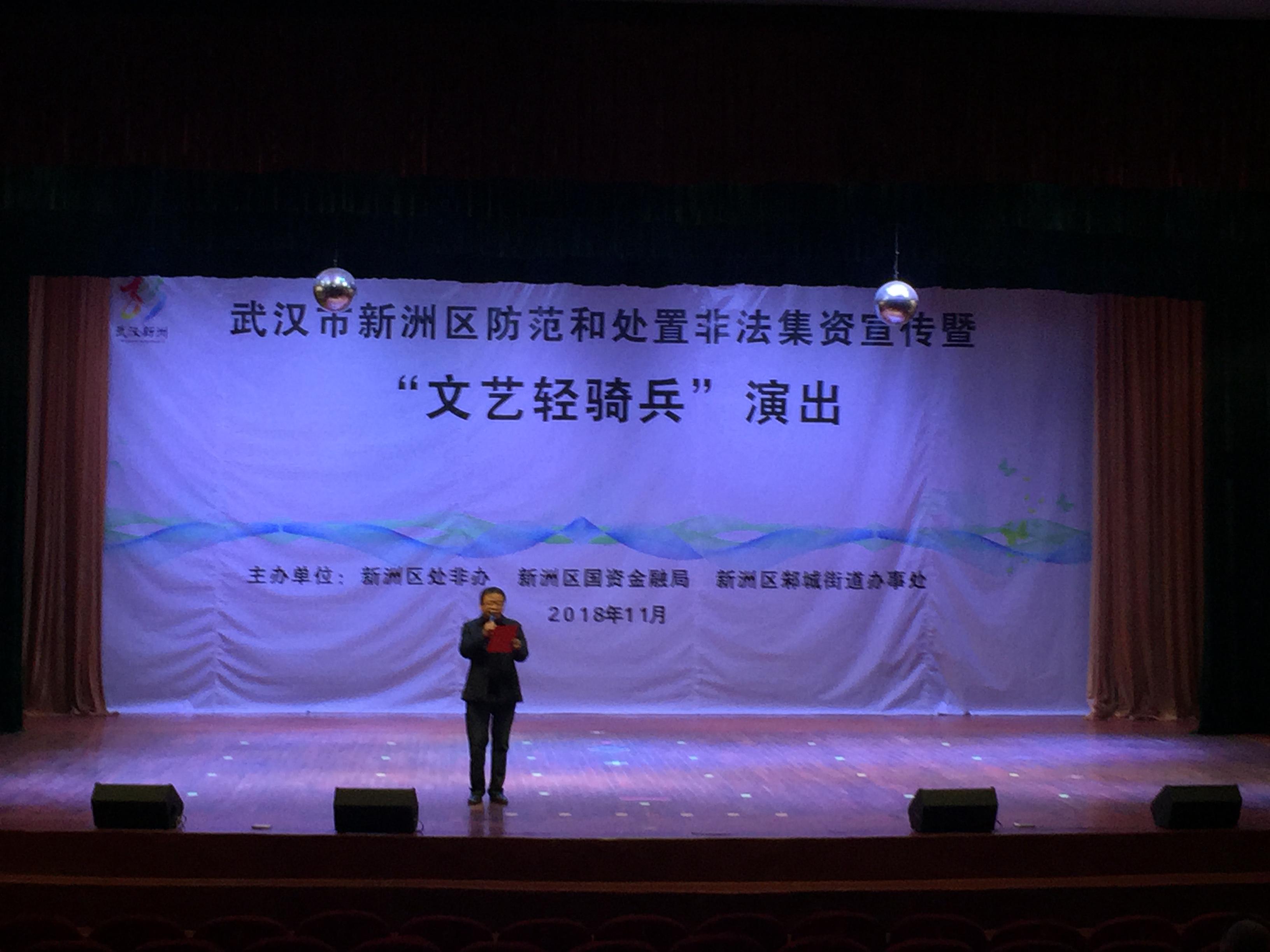 11月14日,由新洲区处非办(国资金融局)主办、武汉市说唱团演出的“处非文艺轻骑兵”宣传活动在新洲剧院举行。
