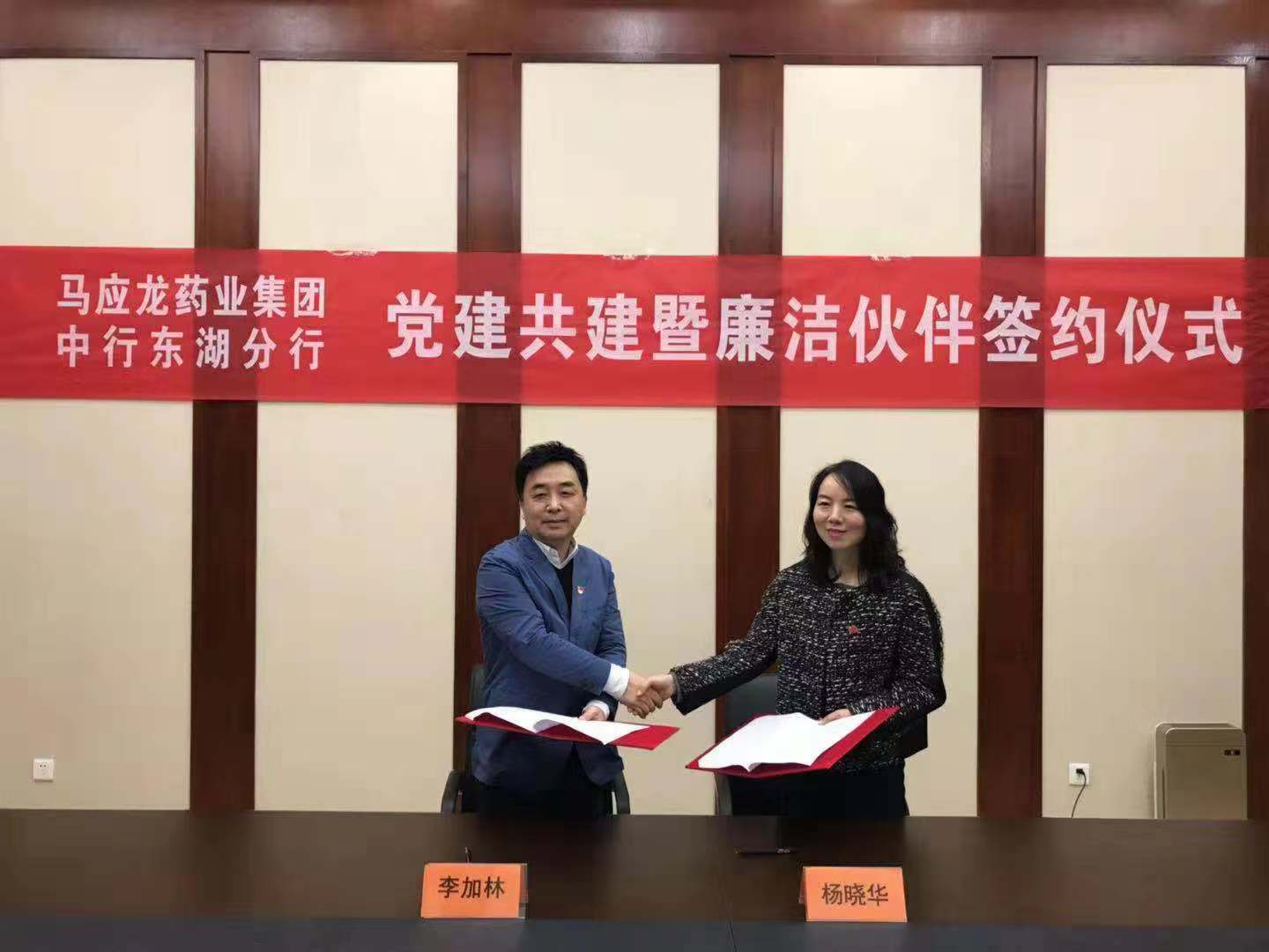 11月21日,中行东湖分行与马应龙药业集团股份有限公司签订党建共建和廉洁伙伴合作协议,并开展首次共建活动,开启了双方建立“亲、清”新型银企关系,深化全面合作、促进合作双赢的新篇章。武汉市人大代表、马应龙药业集团股份有限公司党委书记李加林和中行东湖分行党委书记、行长杨晓华等领导参加共建活动。