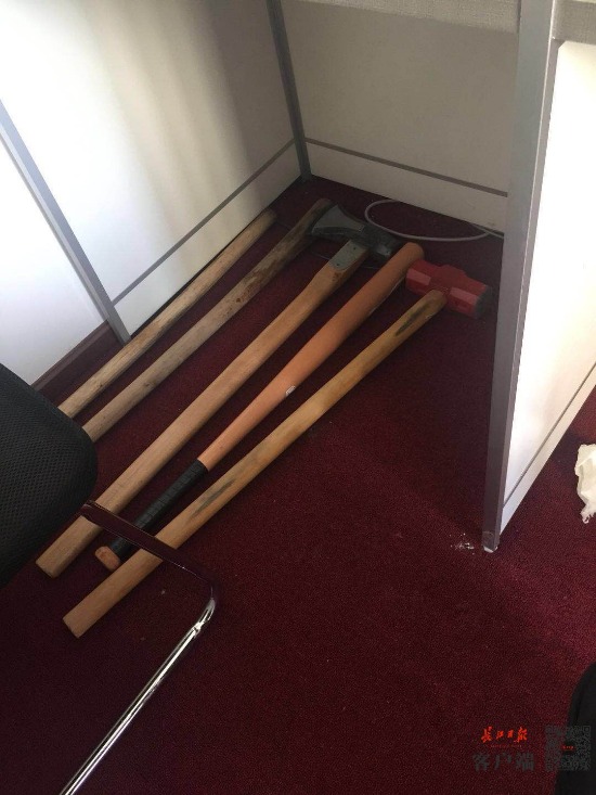 2017年12月21日上午,江岸警方组织150余名警力对这4家公司的9个涉案地点和2个集中住宿点集中抓捕,现场抓获涉嫌违法犯罪人员83名,查获大批铁锤、砍刀、棍棒等作案工具。