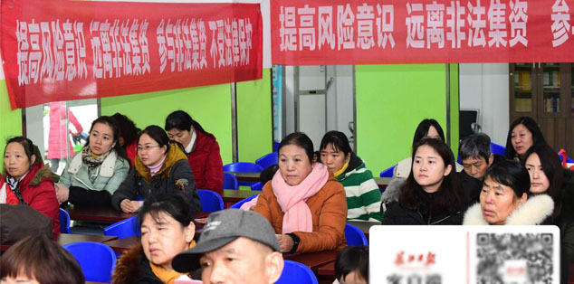 “稳赚不赔的融资项目,诱人的高额回报,再佐之以‘互联网+’的招牌,让许多市民掉入以互联网金融为马甲的非法集资之中。对此,广大市民一定要高度警惕。1月10日,防范非法集资百场公益讲座第42场,在江岸区后湖街东方社区举行。长江公益律师团、湖北典恒律师事务所律师涂娴作为“武汉市防非处非公益讲师团”成员做了演讲。