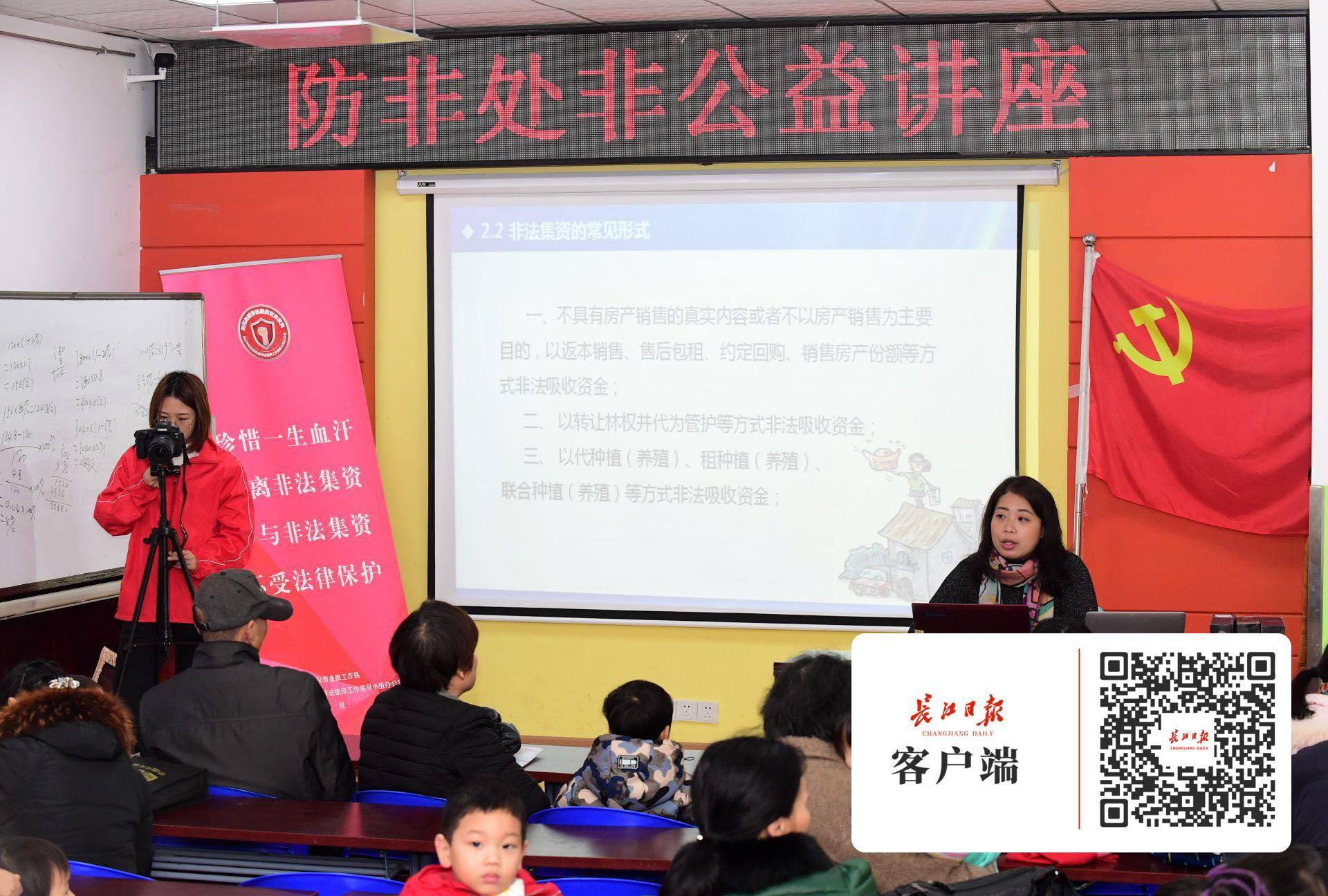 本次公益讲座由武汉市金融局、武汉市防范和处置非法集资工作领导小组办公室联合主办,长江日报报业集团、江岸区处非办联合承办,后湖街东方社区对本次讲座给予了大力支持,积极组织街道工作人员和社区居民参与学习。