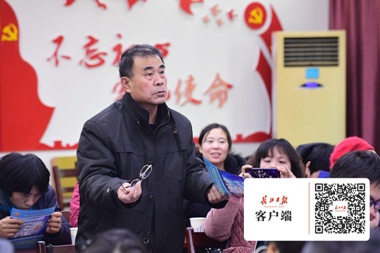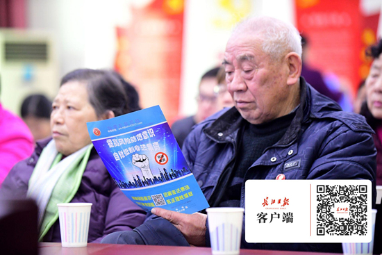 社区老人认真学习非法集资知识并积极参与讨论(长江日报记者刘斌摄)