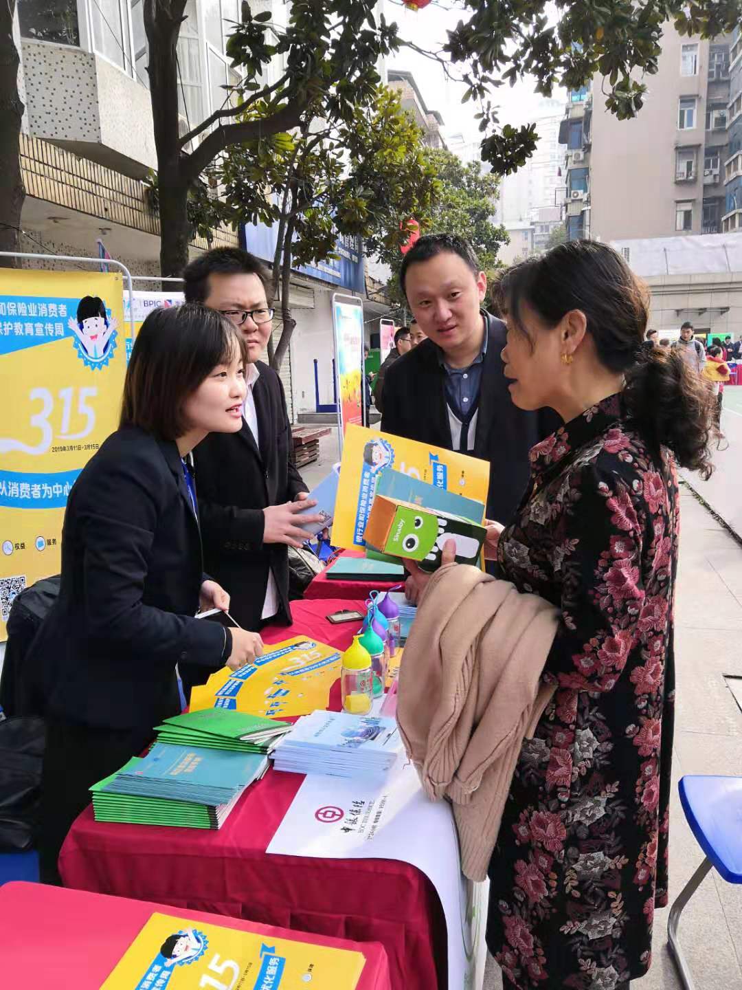3月15日,中银保险湖北分公司参加由湖北省保险行业协会、省银行协会和湖北银行业纠纷调解中心联合举办的“以消费者为中心优化服务”的3·15户外宣传活动。