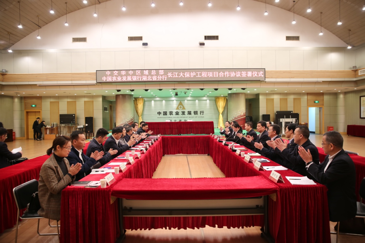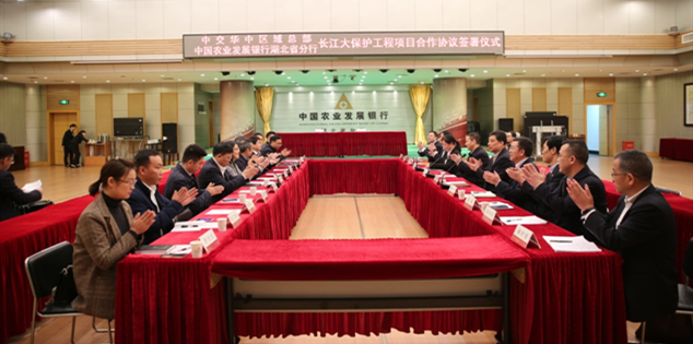 3月21日,中国农业发展银行湖北省分行与中国交通建设股份有限公司华中区域总部签订《长江大保护工程项目战略合作协议》。按照协议,农发行湖北省分行计划未来3年内向中交华中区域总部提供总额不少于500亿元的意向性融资支持,支持其在湖北省区域内基础设施建设、绿色生态保护建设、人居环境建设、现代物流体系建设、农业现代化及科技创新等领域的长江大保护工程项目建设。