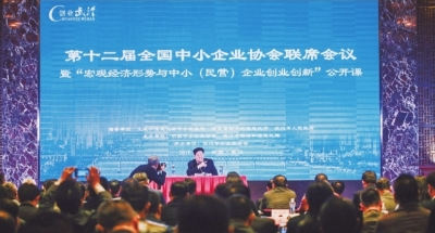 中国中小企业协会会长李子彬在会上做主旨演讲