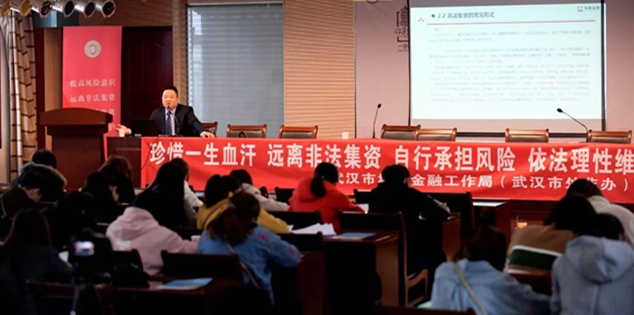本次公益讲座由武汉市地方金融工作局(武汉市防范和处置非法集资工作领导小组办公室)主办,长江日报报业集团、东西湖区处非办、吴家山街街道办事处联合承办。(图片:长江日报记者刘斌 )